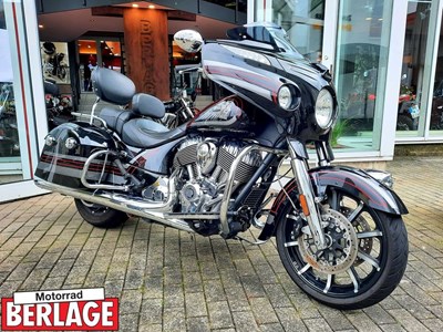Indians Super Chief mit verchromten Fahrzeugteilen, Lederpacktaschen, Windschild und Trittbrettern.
